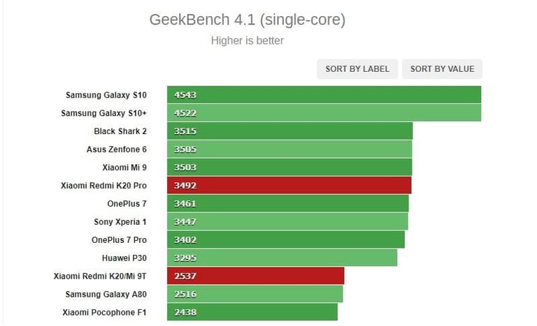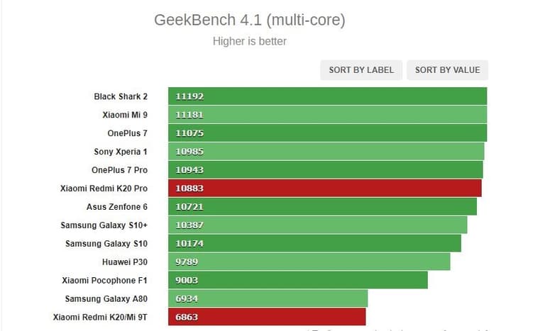 Trong các bài kiểm tra điểm chuẩn tổng hợp, Redmi K20 Pro theo kịp tất cả các smartphone Android hàng đầu trên thị trường hiện nay. Có thể nói K20 hoạt động cũng khá tốt với chip tầm trung 730 nhưng sự xuất sắc đến từ 855 đã khiến K20 Pro có hiệu suất tốt hơn hẳn, đặc biệt là trong các thử nghiệm chơi game.