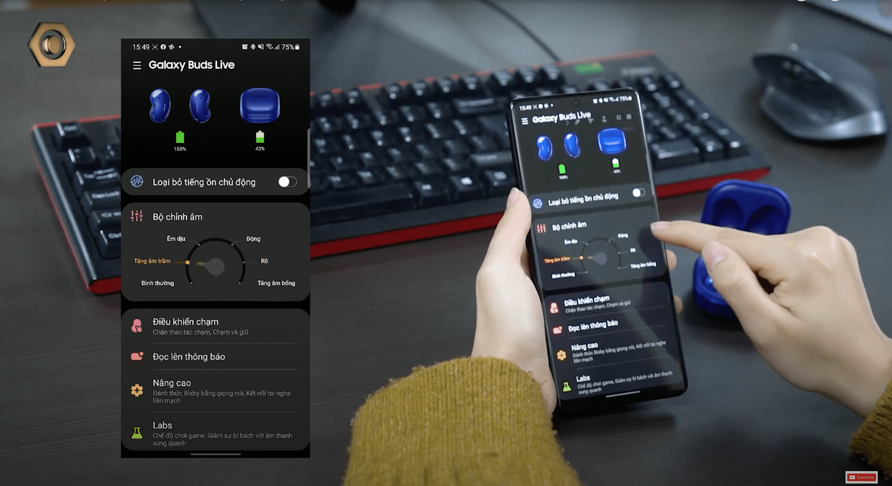 Xét về tính năng, vì thuộc hệ sinh thái Samsung, do đó Galaxy Buds Live có những tính năng rất tuyệt vời nếu kết nối kèm với những smartphone dòng Galaxy. Chúng ta có thể điều chỉnh được bộ âm tăng trầm, tăng bổng. Đặc biệt ở phần Labs, khi bật chế độ chơi game thì chiếc tai nghe này sẽ giảm độ trễ âm thanh để giúp người dùng có âm thanh chơi game đồng bộ, rõ ràng hơn.