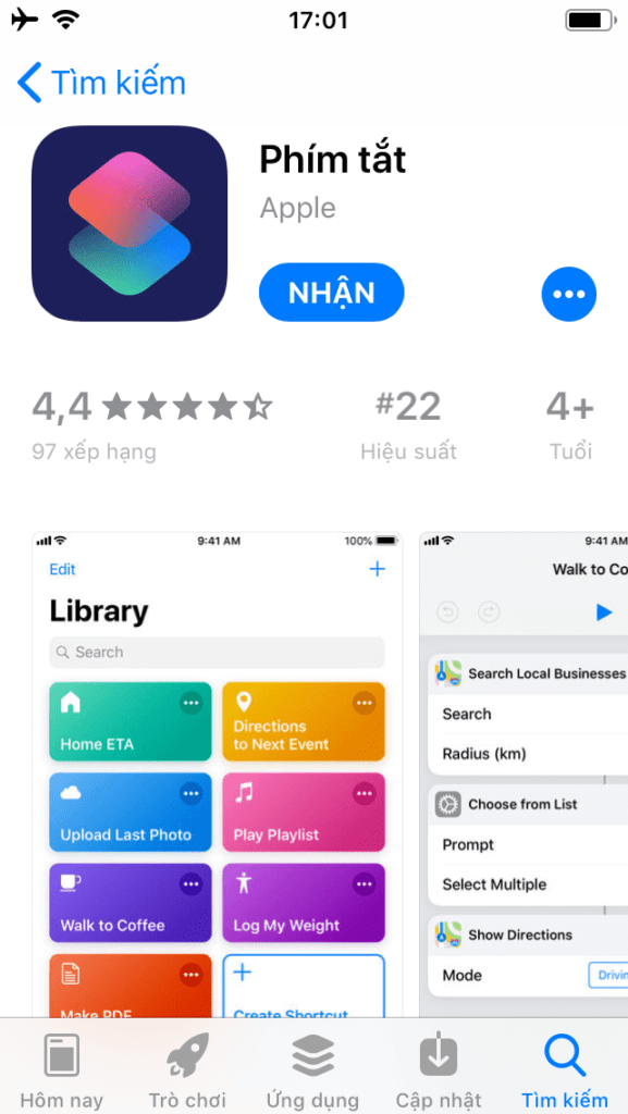 2. Tìm và tải về ứng dụng Siri Shortcuts (hay Phím Tắt) trên App Store.