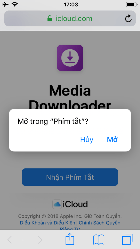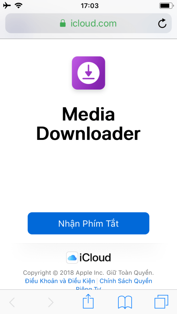 4. Trang web iCloud có chia sẻ phím tắt Media Downloader sẽ xuất hiện, nhấn vào tùy chọn “Nhận Phím Tắt”.
