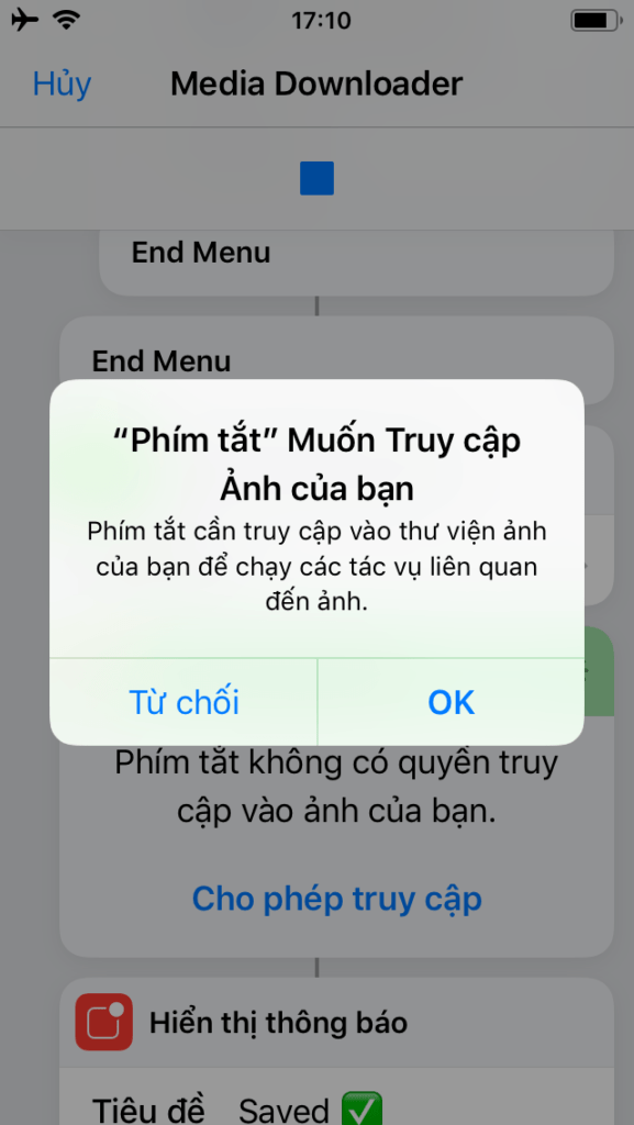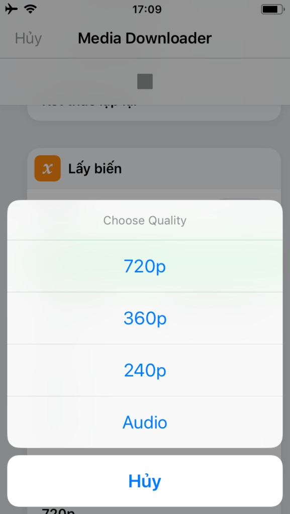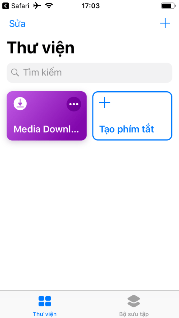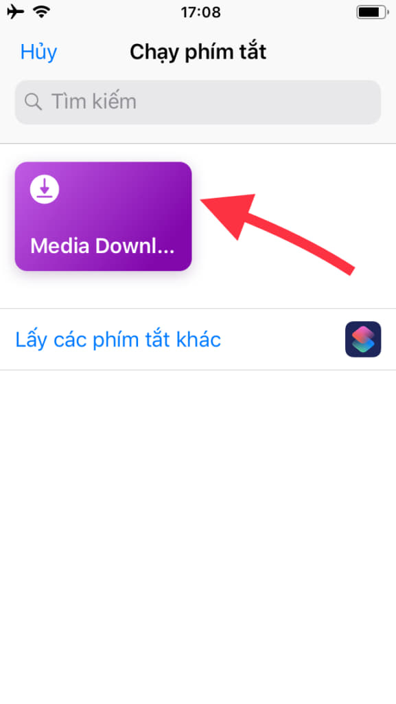 7. Giao diện của Siri Shortcuts sẽ hiện lên với lựa chọn Media Downloader xuất hiện sẳn.