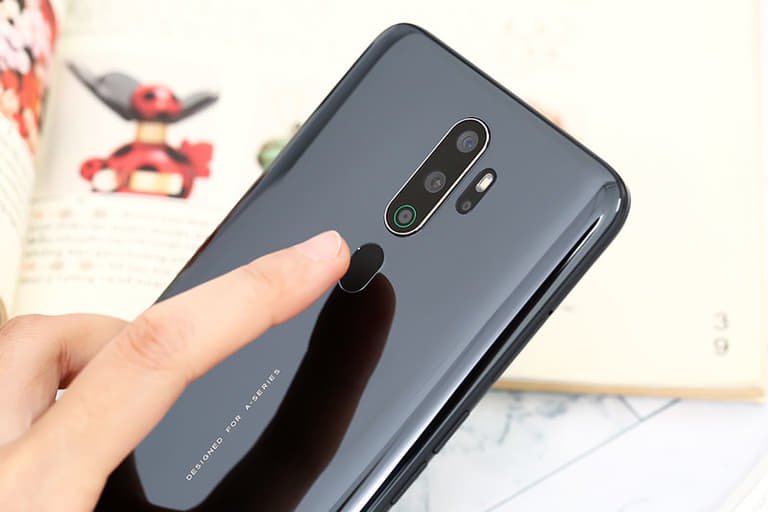 Ngoài ra, Oppo A5 2020 còn được thiết kế bảo mật vân tay mặt lưng hiện đại, thao tác mở khóa thuận tiện. Thiết kế tổng thể máy sang trọng và cuốn hút không thua kém các dòng sản phẩm cao cấp: mặt lưng bóng bẩy, bật tone màu trẻ trung cùng các vị trí góc nghiêng huyền ảo, chuyển đổi màu tinh tế và lung linh.