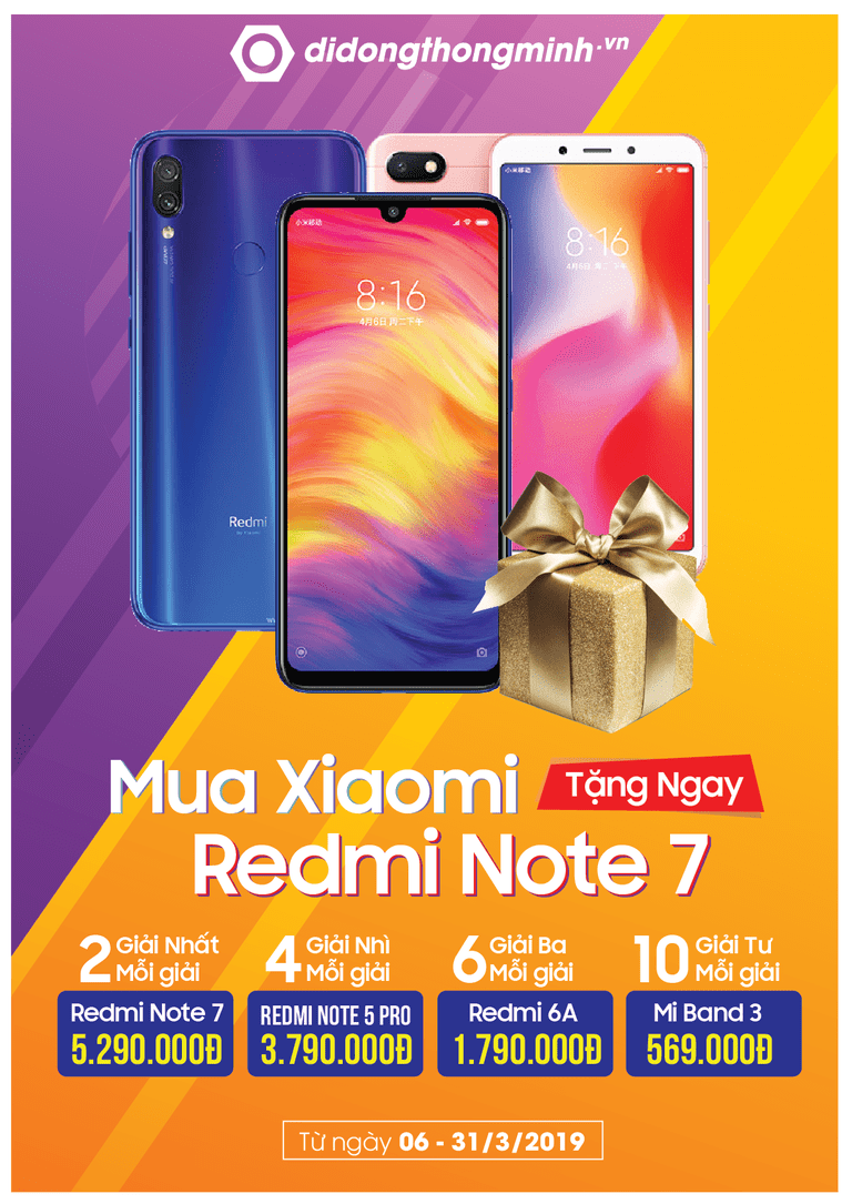 - 2 giải nhất: mỗi giải 1 chiếc Xiaomi Redmi Note 7 6GB/64GB có giá từ 5.290.000đ/máy