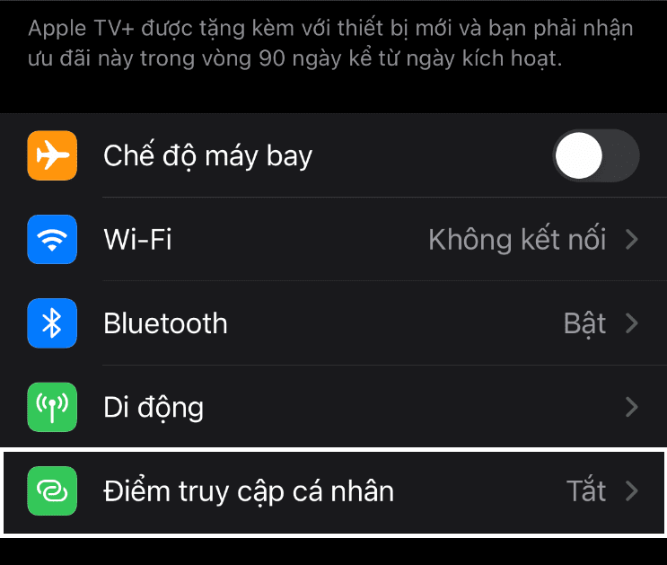 Trong menu Cài đặt> Điểm truy cập cá nhân