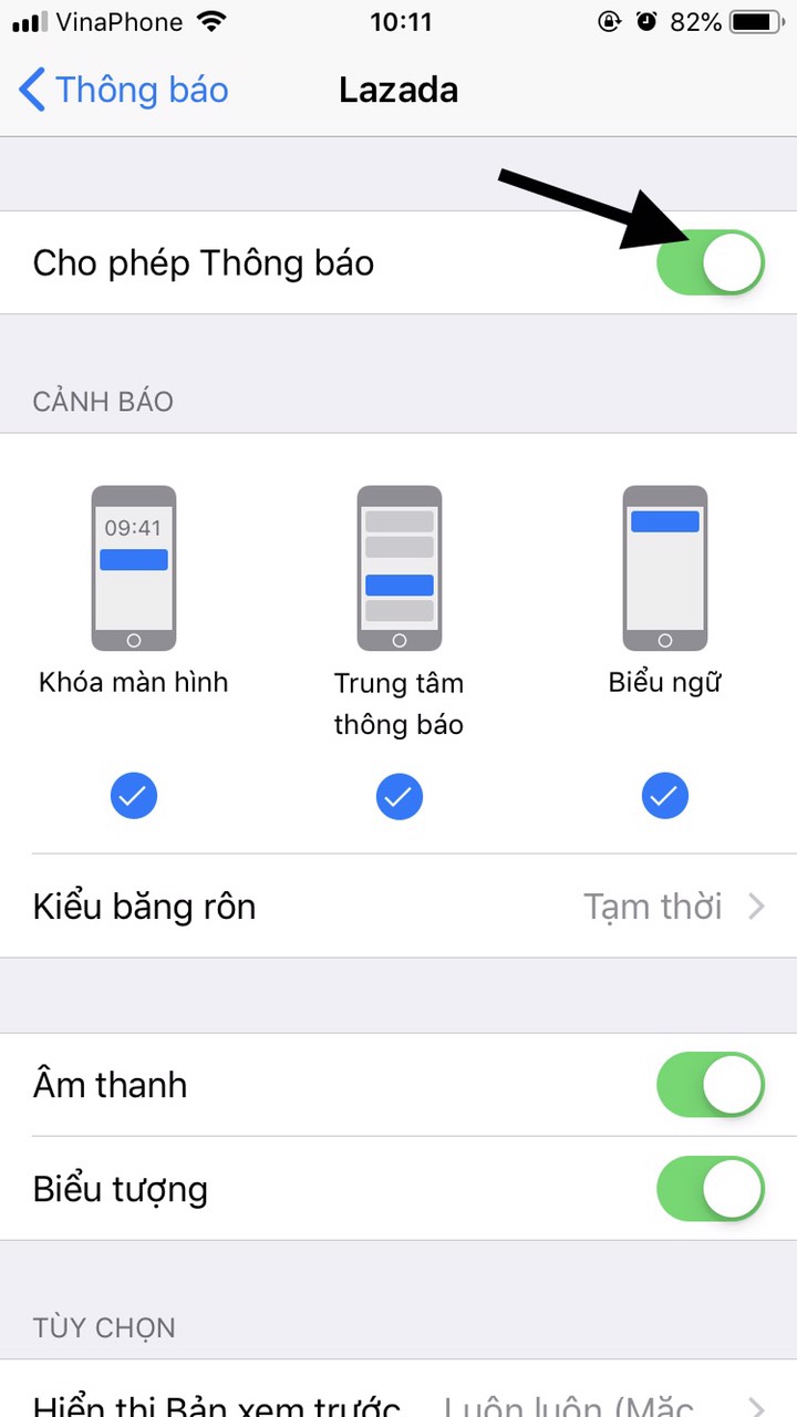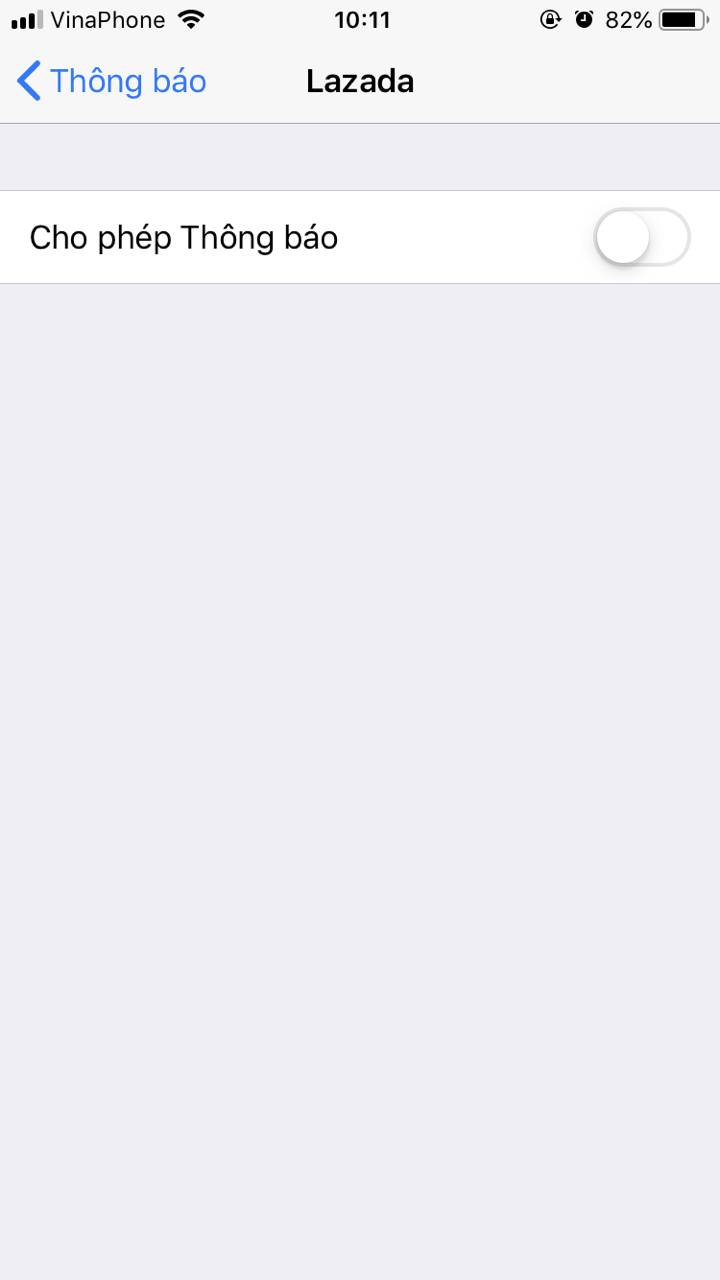 Bước 3: Sau khi chạm vào biểu tượng của ứng dụng Lazada, chúng ta sẽ thấy có khá nhiều tùy chọn, từ vị trí của thông báo, số lượng, âm thanh… Nhưng để tắt hoàn toàn thông báo này, các bạn chỉ cần gạt thanh Cho phép thông báo sang bên trái là xong.