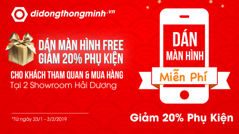 Tất cả các khách hàng đến mua hàng, trải nghiệm sản phẩm hay tham quan showroom đều được dán màn hình smartphone miễn phí, và giảm 20% khi mua phụ kiện bất kỳ, điều kiện khách hàng chỉ cần chụp hình checkin Facebook cá nhân (để chế độ công khai) tại showroom Di Động Thông Minh – 56 Trần Hưng Đạo, Hải Dương hoặc 32 Thái Học 2, Sao Đỏ, Chí Linh, Hải Dương, kèm dòng chữ “Tết đến Xuân sang – Quà tặng ngập tràn tại Di Động Thông Minh”