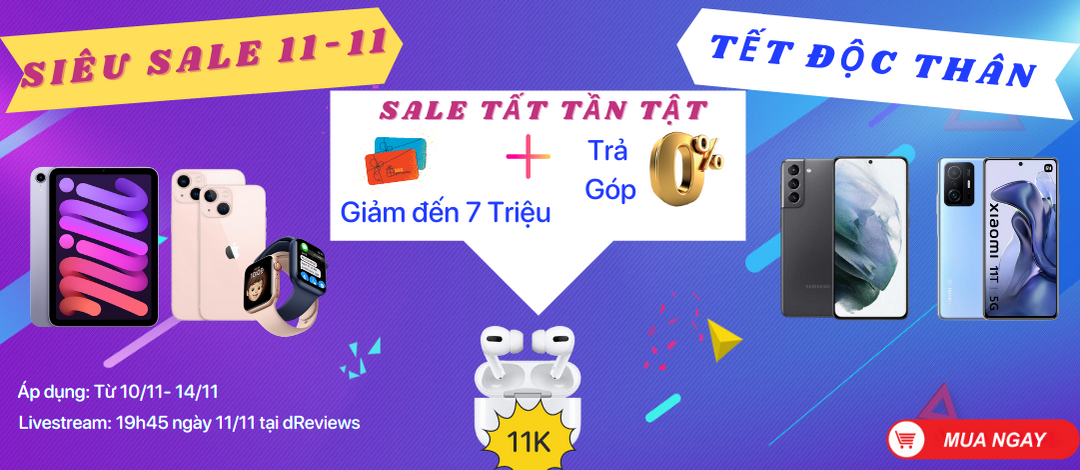 Đừng bỏ lỡ cơ hội săn sale siêu rẻ tại livestream lúc 19h45 ngày 11/11 trên kênh youtube dReviews nhé!