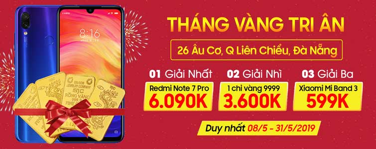 Nhằm mục đích tri ân khách hàng đã tin tưởng và đồng hàng cùng Di Động Thông Minh 26 Âu Cơ trong suốt thời gian vừa qua, và mong muốn khách hàng có thể trải nghiệm và sở hữu những thiết bị Smartphone chính hãng giá rẻ nhất khu Vực Hoà Khánh, từ ngày 08/05/2019 đến hết 31/05/2019 Di Động Thông Minh xin gửi tới chương trình “Tri ân khách hàng – Tặng miễn phí Redmi Note 7 Pro + 2 chỉ vàng 9999 + 3 Mi Band 3″ dành riêng cho tất cả khách hàng mua Smartphone tại 26 Âu Cơ, Liên Chiểu, Đà Nẵng.