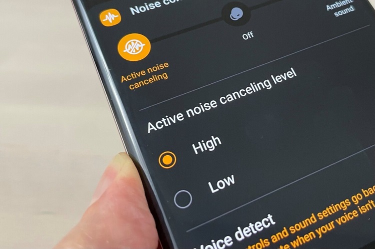 Samsung cũng đã trang bị tính năng khử tiếng gió Wind Shield, tận dụng thiết kế in-ear bám sát vào ống tai giúp loại bỏ tạp âm, đặc biệt là tiếng gió thổi vượt trội. Tính năng chống ồn trên Buds Pro sẽ hoạt động theo từng trường hợp, ví dụ như trong phòng họp, tai nghe sẽ tự điều chỉnh cường độ để tránh gây áp lực lên tai người dùng. Để giúp cho người dùng dễ dàng kiểm soát, Buds Pro mặc định có ba chế độ: Conversation Mode (Tối ưu cho cuộc hội thoại), Ambient Sound Mode (Cho phép người dùng lắng nghe âm thanh môi trường), Active Noise Cancellation Mode (Chống ồn chủ động).