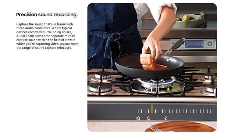 Tiếp Theo đó là tính năng Audio Zoom, cho phép bạn zoom âm thanh khi bạn zoom lại gần