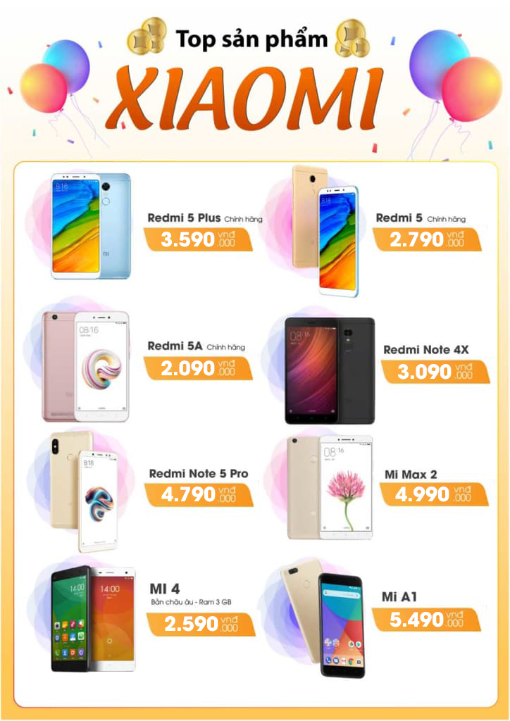 - Xiaomi Redmi 5 chính hãng giá từ: 2.790.000 vnđ