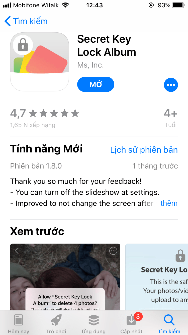 Secret Key Lock Album : App ẩn và khoá ảnh và và video trên iPhone đơn giản dễ dùng