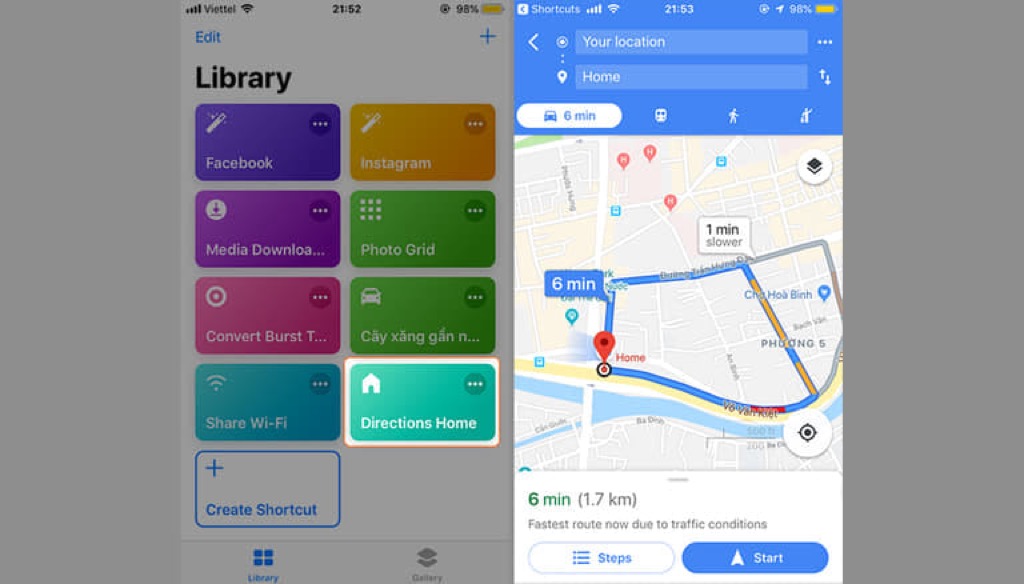 Tiếp tục với hàng loạt phím tắt hay có trên ứng dụng Siri Shortcuts, hôm nay mình sẽ giới thiệu đến các bạn phím tắt “Directions Home” để tìm đường về nhà một cách nhanh chóng. Phím tắt này sẽ nhanh chóng xác định vị trí bạn đang đứng bằng GPS, sau đó tìm đường qua Google Maps hoặc Apple Maps.
