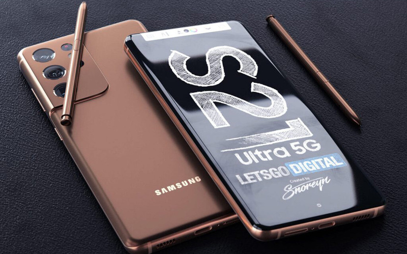 Cuối cùng cao cấp nhất là phiên bản Galaxy S21 Ultra. Đúng như cái tên của nó, máy được Samsung trang bị những gì tốt nhất và cao cấp nhất hiện nay. Dự kiến máy sẽ có màn hình cong tràn về 2 cạnh giống Galaxy Note 20 Ultra. Kích thước của máy cũng lớn hơn lên đến 6.8 inch độ phân giải 2K+, sử dụng tấm nền LTPO OLED với tần số tương thích từ 1 tới 120Hz. Đây cũng sẽ là một trong những thiết bị có màn hình sáng nhất với độ sáng tối đa 1.600 nits tỷ lệ tương phản 3.000.000 : 1 và được bảo vệ bởi lớp kính Gorilla Glass Victus.