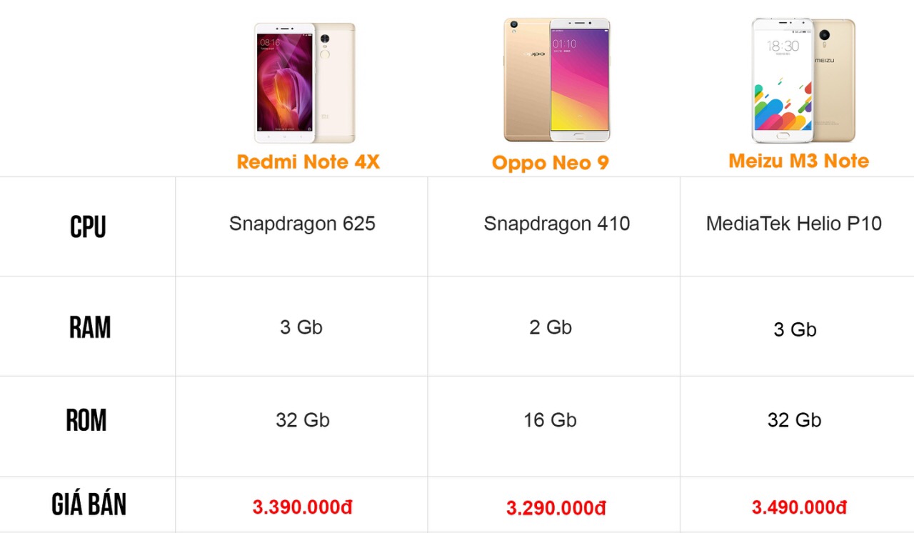 So sánh cấu hình của Redmi Note 4X so với các smartphone cùng tầm giá như Oppo Neo 9 hay Meizu M3 Note chúng ta có thể thấy dế cưng nhà Xiaomi nổi bật hơn hẳn về cấu hình. Nếu các bạn đang tìm kiếm sản phẩm cấu hình tốt, giá rẻ với nhiều sự lựa chọn màu sắc đa dạng thì Redmi Note 4X rất đáng để sở hữu, sự lựa chọn hoàn hảo và là 1 trong 3 sản phẩm Xiaomi đáng mua nhất mọi thời đại.
