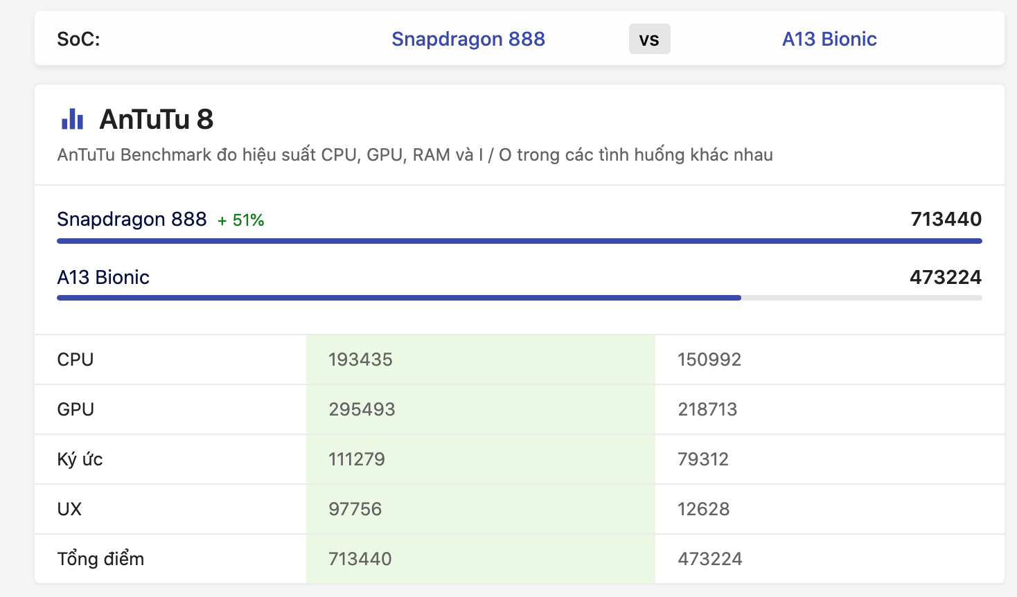Nhìn vào bảng so sánh, dễ dàng có thể thấy nếu xét về hiệu năng, Mi 11 dường như không có đối thủ trong cùng phân khúc. Với hiệu năng của chip Exynos 990 chỉ tương đương với Snapdragon 865. So sánh nhanh hiệu năng giữa iPhone 11 và Mi 11, các thông số của con chip Apple 13 đều không mạnh bằng Snapdragon 888.