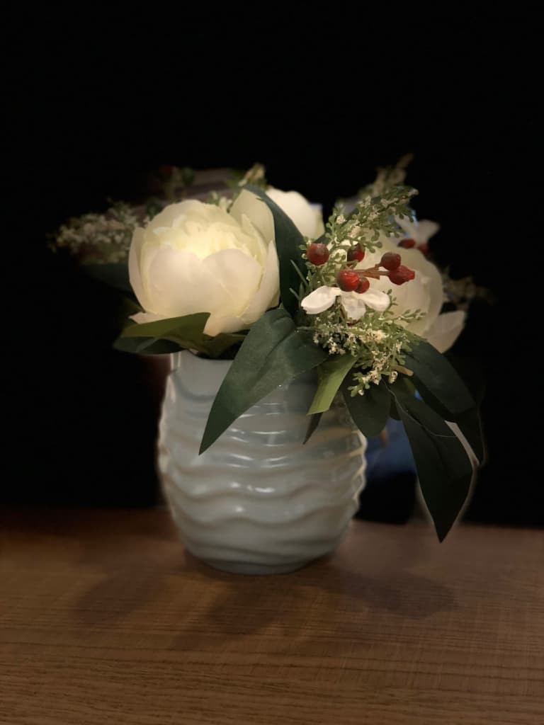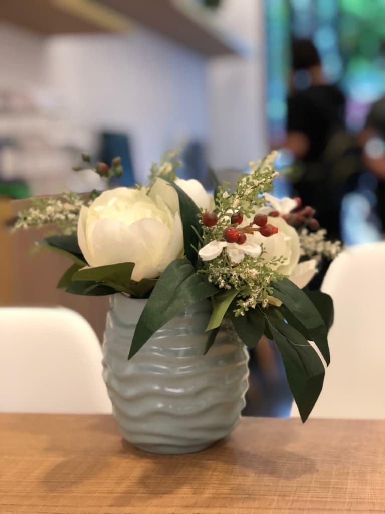 Chuyển sang điều kiện ánh sáng phức tạp trong nhà, thì ảnh xóa phông của iPhone 8 Plus đã không còn hoàn hảo như trước nhưng vẫn là chất lượng hơn rất nhiều so với đa phần các smartphone hiện nay.. Một số chi tiết phía sau của chậu hoa bị xóa lem vào phông; điều này khiến cho chủ thể bị mất một số chi tiết.