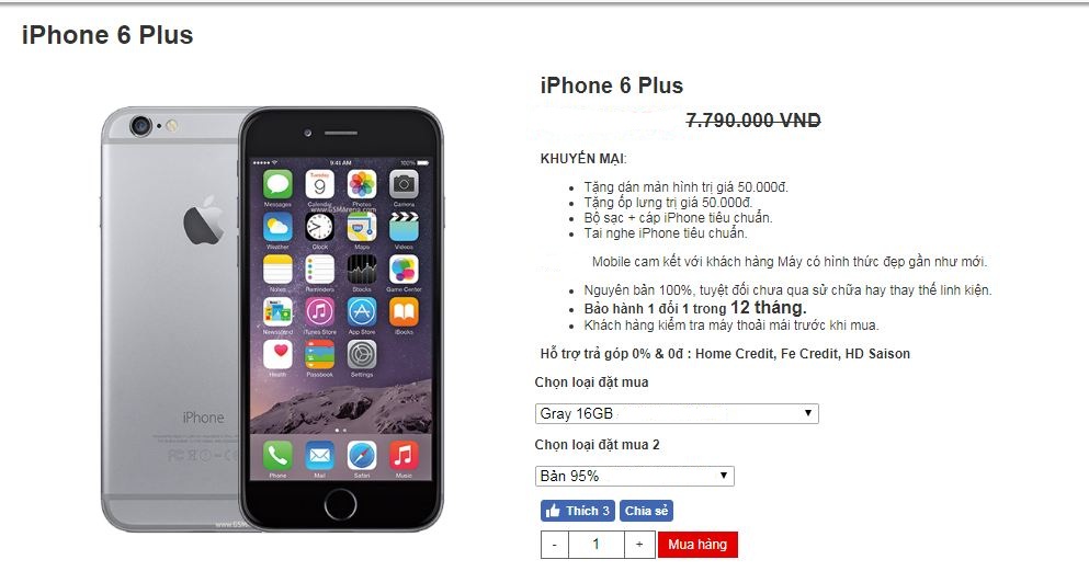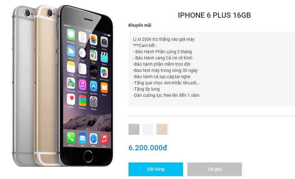 Giá iPhone 6 Plus của một số cửa hàng bán điện thoại tại Hải Phòng :
