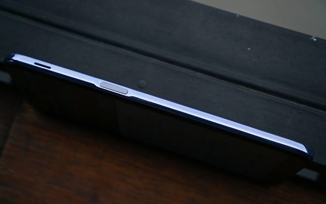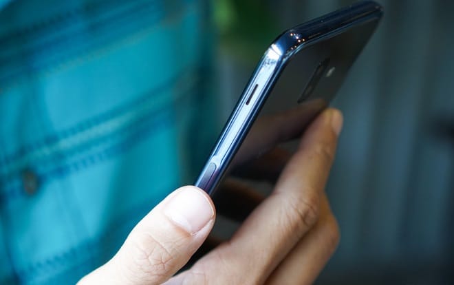 Một điểm đặc biệt của chiếc máy này là cảm biến vân tay ở mặt sau không còn nữa, thay vào đó tích hợp vào thẳng phím nguồn. Đó là lý do vì sao bạn thấy chỗ đặt phím nguồn được vát lõm xuống để người dùng đặt ngón tay vào quét dễ hơn. Theo cảm nhận cá nhân, cách đặt vân tay như thế này dễ sử dụng hơn so với đặt đằng sau máy.