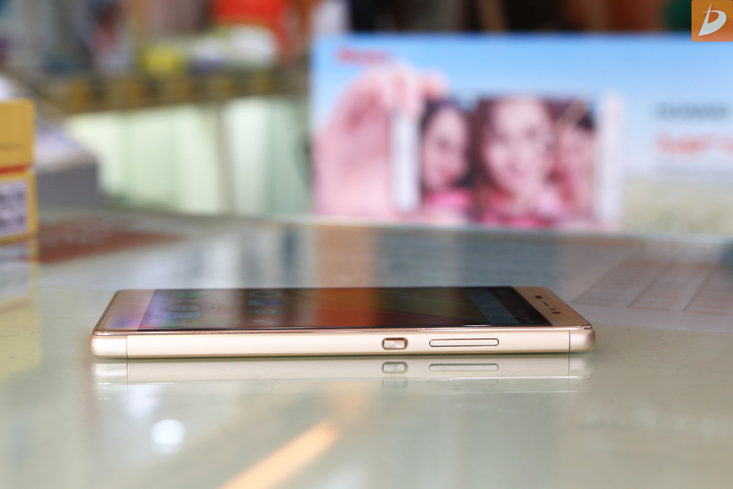 Cạnh trái và cạnh phải viền kim loại được bo tròn nhẹ theo phong cách Xperia Z3, và được phay vát kim cương ở phía cạnh dưới. Để đảm bảo khả năng bắt sóng tốt nhất thì cạnh trên và dưới của Vi5 vẫn được làm từ nhựa nhưng màu sắc thì vẫn được giữ đồng bộ với phần thân máy, nên chúng ta không có cảm giác lạc lõng khi cầm trên tay.
