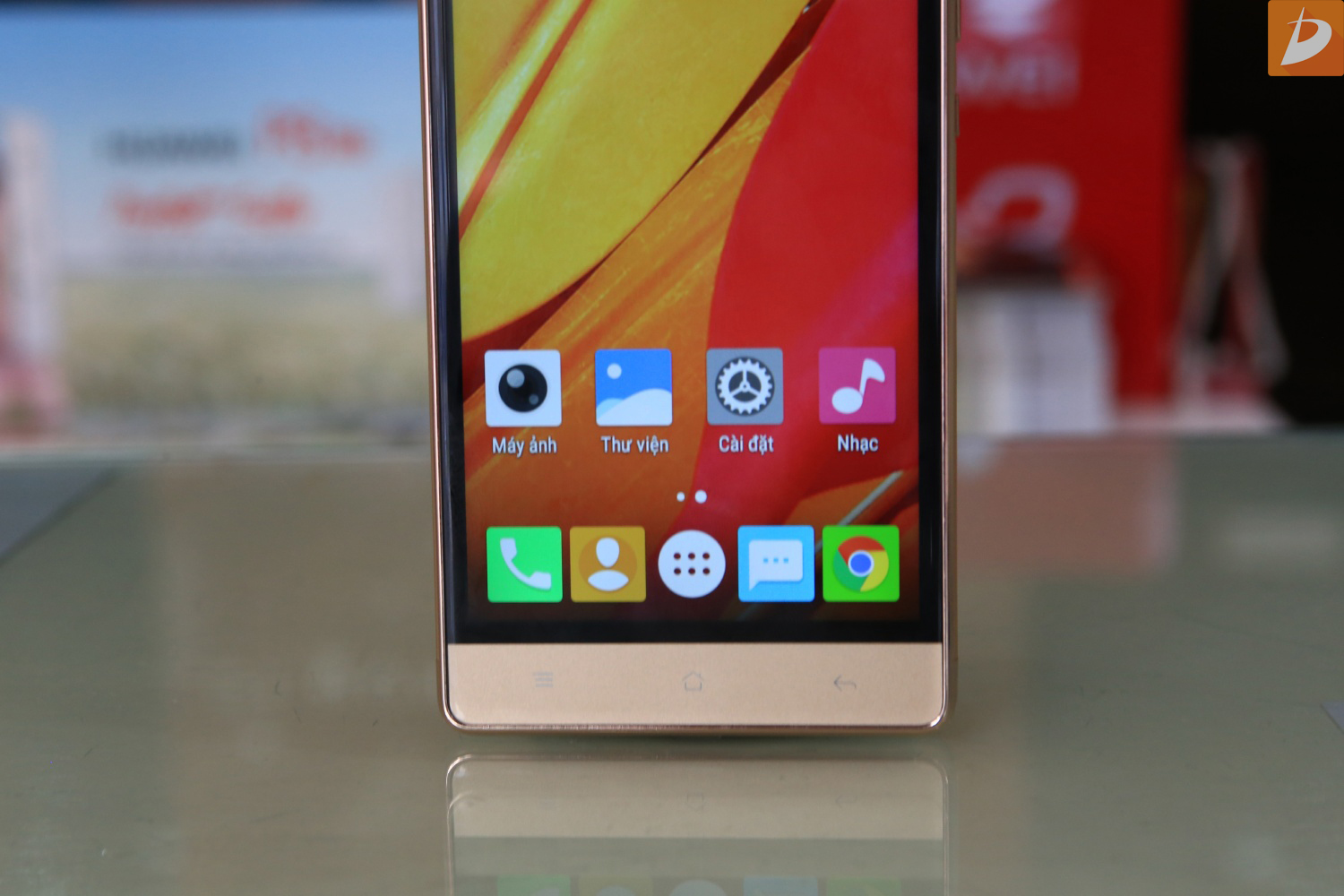 Mặt trước sẽ là màn hình cảm ứng 5” được thiết kế dạng 2.5d, giống như trên 1 số siêu phẩm như Samsung S6 hay iPhone 6 giúp khi trải nghiệm lướt từ các cạnh chúng ta sẽ thấy mượt mà hơn, không có cảm giác gợn ở các đầu ngón tay.