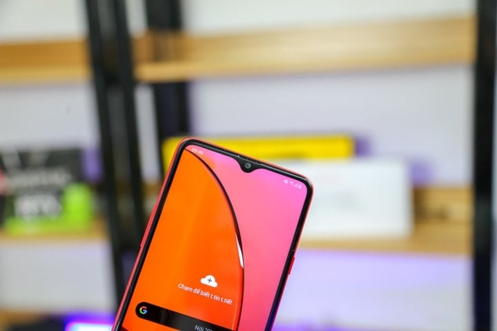 Mặt trước của A20s tiếp tục là màn hình giọt nước khía hình chữ V mà Samsung gọi là Infinity V, đây cũng là nơi chứa camera selfie 8MP và loa thoại của máy.