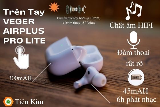 Trên Tay, Đánh Giá Veger Airplus Pro- Chất Âm HIFI Tinh Tế, Pin 6h Giá