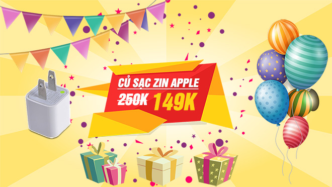 Chương trình ưu đãi Flash Sale nhân dịp đại lễ 30/04 – 01/05/2018 mua củ sạc Zin chính hãng Apple chỉ còn 149.000vnđ (Giảm tới 100K so với giá niêm yết cũ 250.000vnđ) ưu đãi dành cho 200 suất đặt hàng mua hàng sớm nhất cùng với nhiều quà tặng và ưu đãi cho khách hàng: