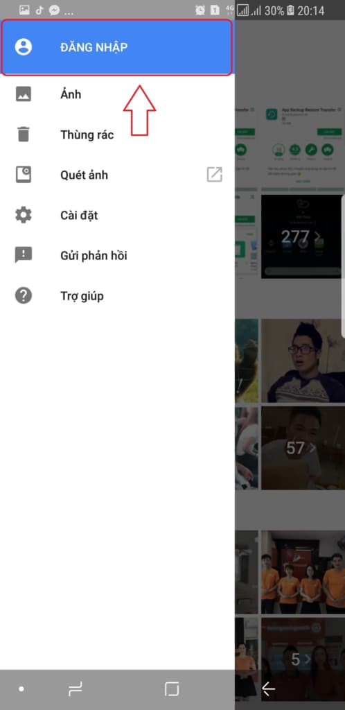 Mở ứng dụng ra và làm theo hướng dẫn bấm vào dấu 3 gạch phía trên bên trái màn hình để tiến hành đăng nhập