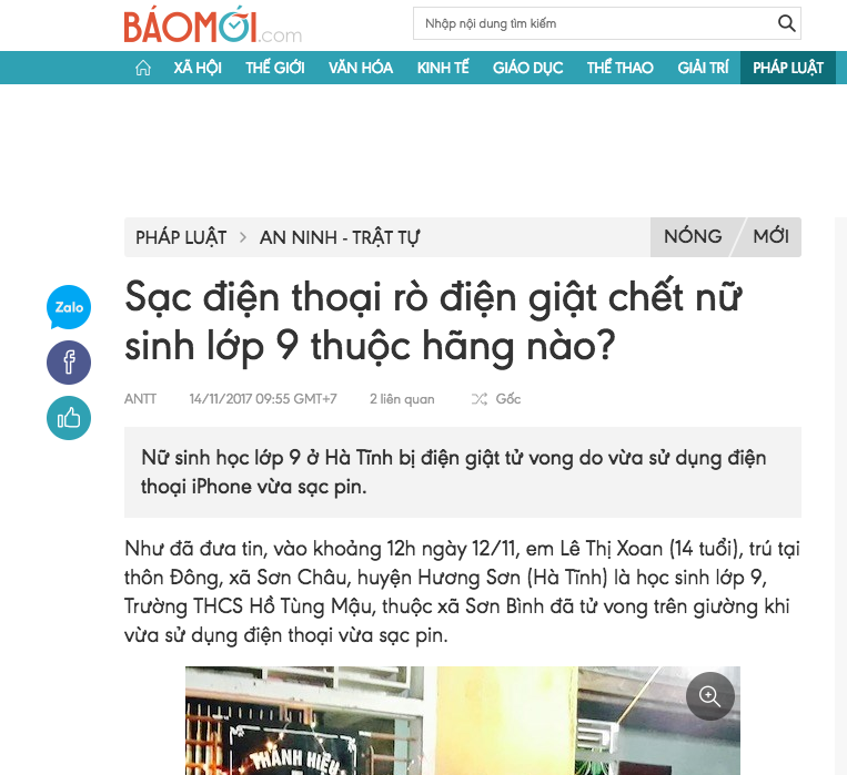 3. Nữ sinh lớp 9 tử vong do dùng điện thoại trong khi cắm sạc không rõ nguồn gốc