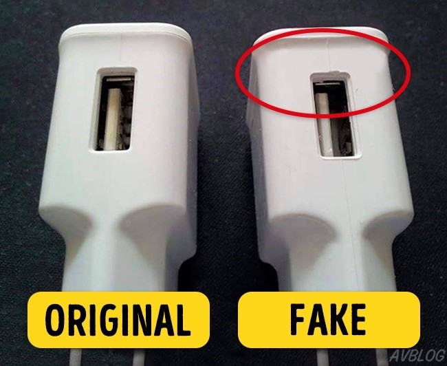 Sạc chính hãng có chất lượng gia công tốt hơn nhiều so với củ sạc Fake