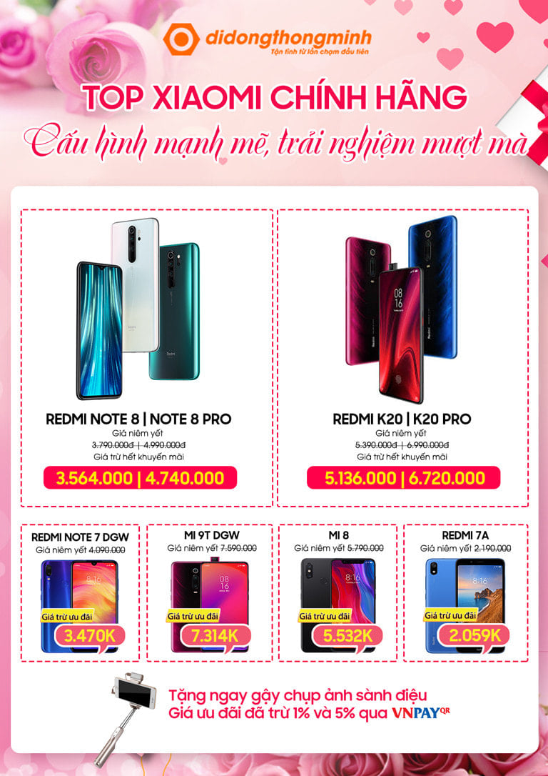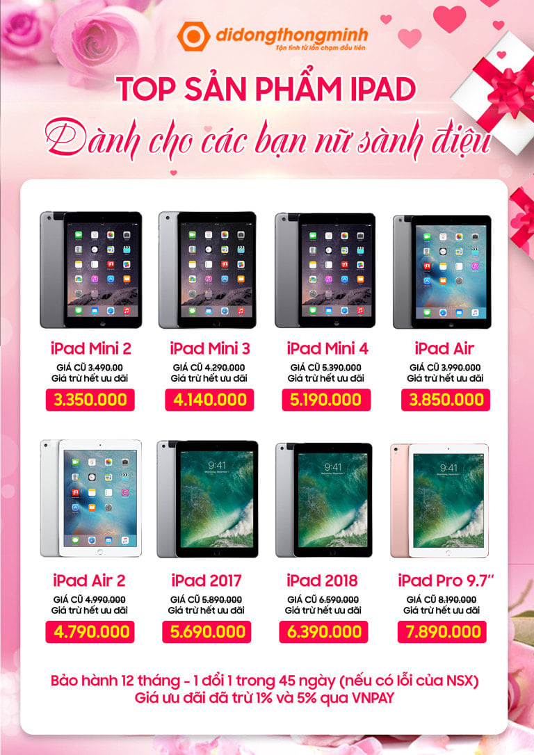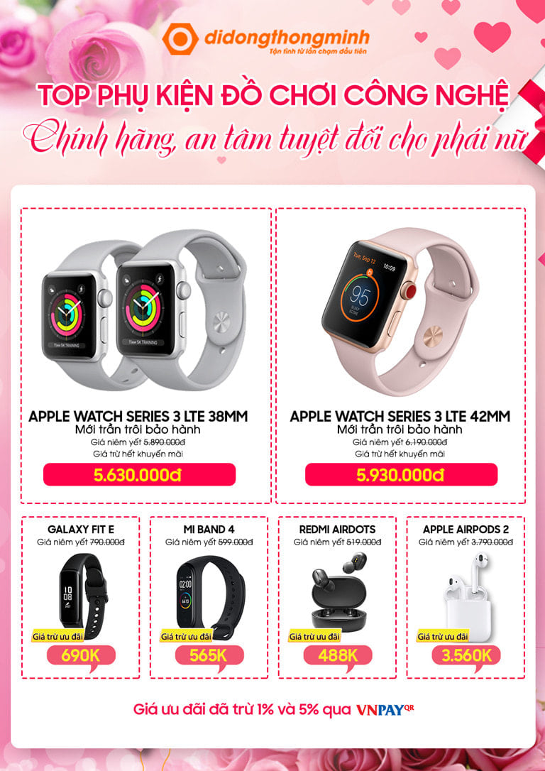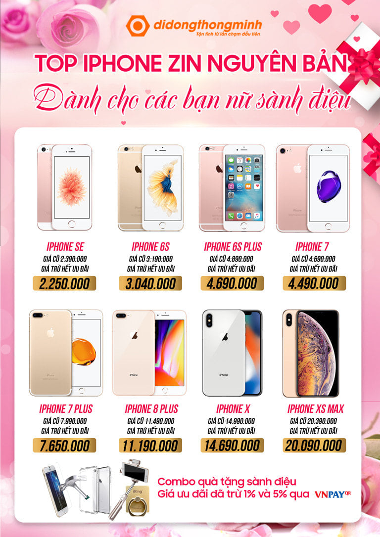 Nhằm tôn vinh những người phụ nữ Việt Nam và tri ân quý khách hàng nữ nhân dịp kỷ niệm 89 năm ngày thành lập Hội liên hiệp Phụ nữ Việt Nam. Di Động Thông Minh xin gửi tới toàn bộ khách hàng nữ khi mua sắm điện thoại, máy tính bảng, phụ kiện và đồ chơi công nghệ tại hệ thống showroom Di Động Thông Minh toàn quốc hoặc mua Online từ xa trong dịp này sẽ nhận được ưu đãi lớn trị giá hơn 500.000đ.