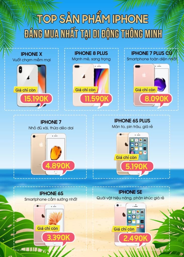 Với 8 năm kinh nghiệm trong lĩnh vực kinh doanh các sản phẩm Apple: iPhone, iPad với chế độ bán hàng tận tâm, hậu mãi chu đáo, Di Động Thông Minh đã liên tục nhận được sự ủng hộ của khách hàng và không ngừng lớn mạnh với 22 Showroom và 5 trung tâm bảo hành lớn trải dài trên mọi miền Tổ Quốc, tiếp tục sứ mệnh phổ cập Smartphone / Tablet tới mọi người mọi nhà. Để đáp ứng nhu cầu mua sắm trong hè 2019 này, Di Động Thông Minh hân hạnh mang tới cho cho tất cả những vị khách hàng yêu quý chương trình khuyến mãi: “Tuần vàng Apple – Tri ân Khách hàng : Giá sập sàn, Siêu khuyến mãi”
