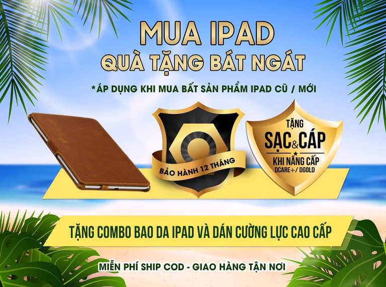 - Tặng Combo Bao da iPad cao cấp + Dán cường lực cao cấp trị giá 400.000vnđ