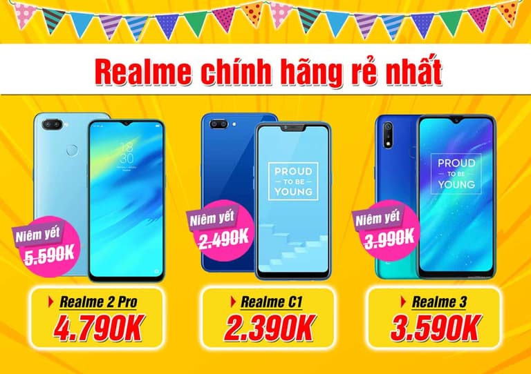 - Realme 3 chính hãng 3Gb/32Gb, chip Helio P60, màn hình giọt nước, camera kép siêu đỉnh giá chỉ 3.590.000đ