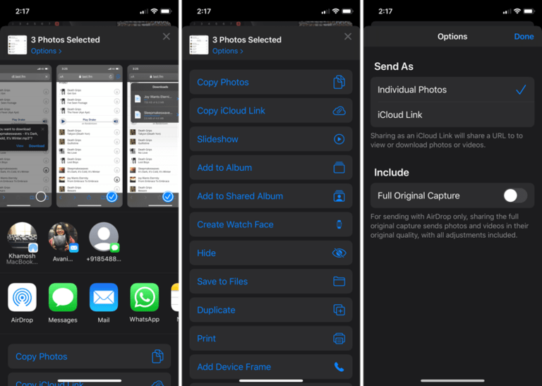 Khi bạn nhấn vào nút Chia sẻ, bạn sẽ thấy một bảng chia sẻ mới. Trên cùng là những gợi ý thông minh để mọi người gửi ảnh tới. Trong sẽ bao gồm các thiết bị AirDrop, iMessage và Mail (nếu bạn đã sử dụng chúng trước đây).