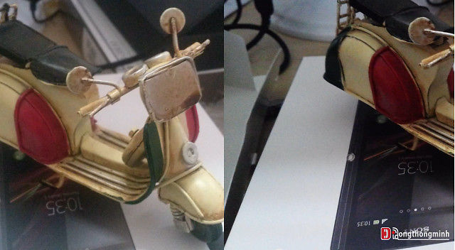 Còn trong điều kiện thiếu sáng nếu không sử dụng đèn Flash thì các bạn có thể thấy rõ ràng chất lượng ảnh của cả 2 thiết bị khá kém có rất nhiều hạt nhiễu khi zoom các bức ảnh.