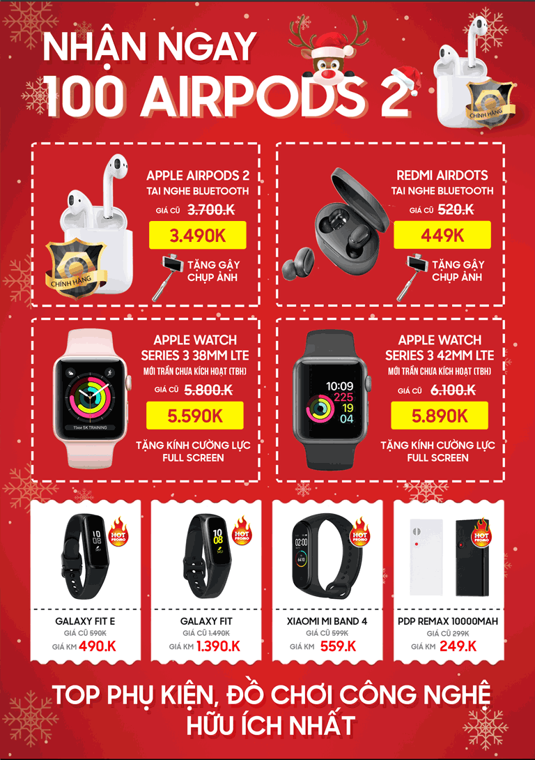VUI GIÁNG SINH - RINH QUÀ CHẤT: Tặng 100 Airpods 2 chính hãng