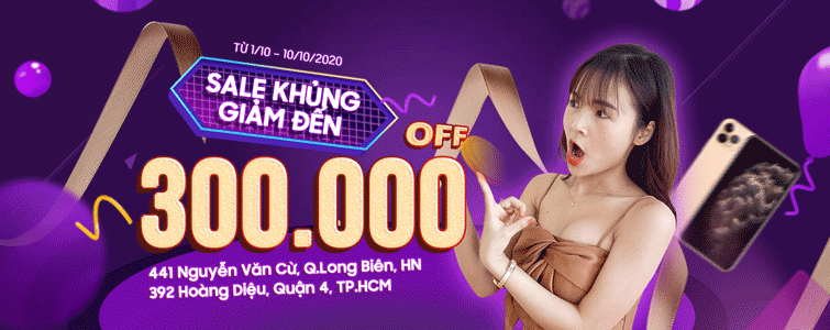 Theo đó, trong thời gian chương trình, quý khách hàng khi mua sắm các sản phẩm điện thoại, máy tính bảng tại chi nhánh 441 Nguyễn Văn Cừ, Long Biên, Hà Nội và 392 Hoàng Diệu, Quận 4, TP. HCM sẽ nhận được ưu đãi giảm giá & tặng quà 300.000đ (không áp dụng cùng các chương trình giảm giá khác) cực kỳ hấp dẫn. Cụ thể: