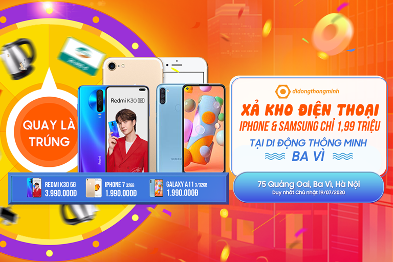 Quý khách hàng tới thăm quan showroom Di Động Thông Minh 75 Quảng Oai, Thị trấn Tây Đằng, Ba Vì, Hà Nội sẽ được tham gia vòng quay 100% nhận quà mà không cần mua hàng. Đến là có Quà tặng miễn phí, trị giá lên tới 3.000.000đ trong thời gian từ 7h-8h sáng ngày chủ nhật 19/07/2020. Cụ thể như sau: