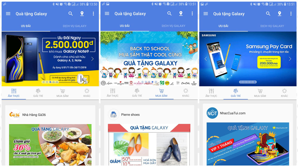 Samsung hợp tác với rất nhiều hệ thống để đưa ra những chương trình ưu đãi trên Galaxy Gift