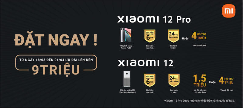 Giá đặt trước Xiaomi 12 Pro tại Di Động Thông Minh có giá chỉ từ 27.990 triệu cho phiên bản 12GB/256GB. Vì vậy, hãy nhanh tay đặt trước Xiaomi 12 Pro để là người đầu tiên sở hữu siêu phẩm này của nhà Xiaomi với giá hợp lý nhất các bạn nhé!