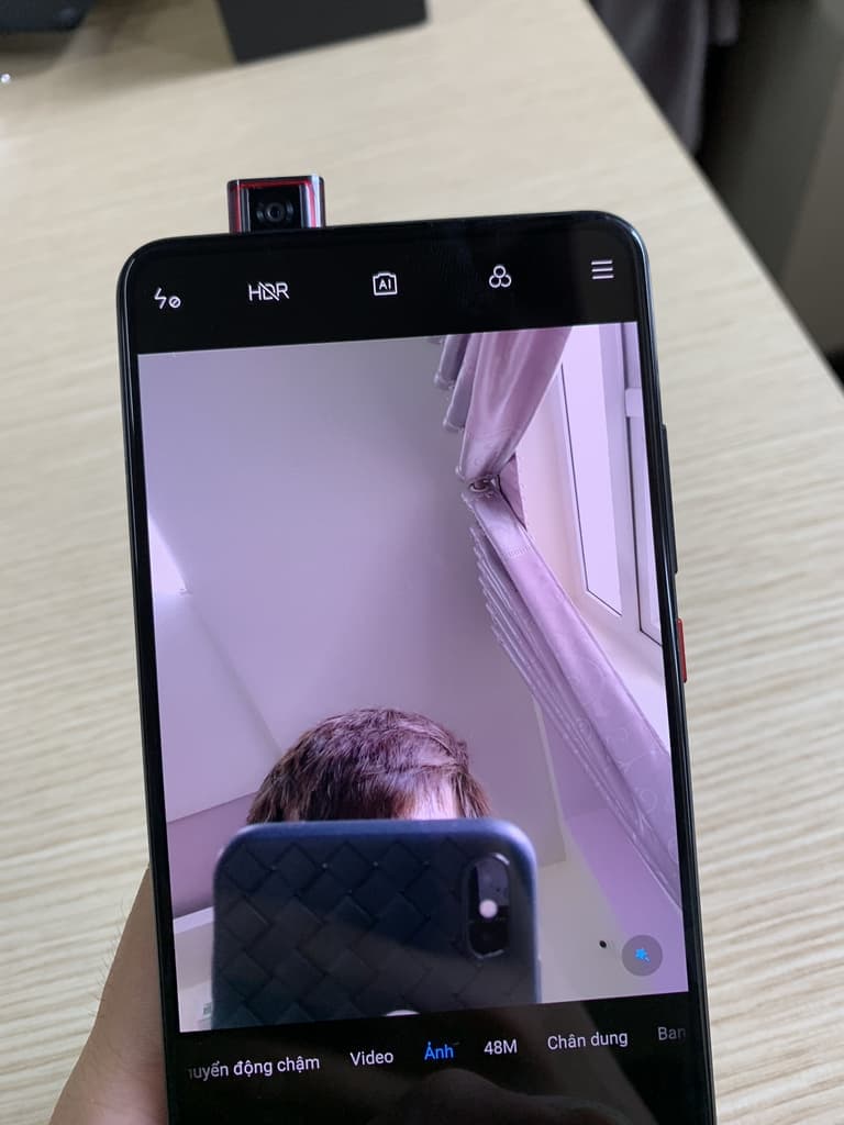 Camera trước của máy là kiểu camera pop-up hay còn được gọi là camera “thò thụt” với độ phân giải 20MP hỗ trợ lấy nét tự động, cũng được tích hợp công nghệ AI vào để làm đẹp và cung cấp tính năng chụp ảnh chân dung cho người dùng. Ngoài ra điểm đặc biệt của chiếc camera thò thụt này là 2 cạnh được thiết kế trong suốt kết hợp thêm đèn báo trông khá đẹp mắt