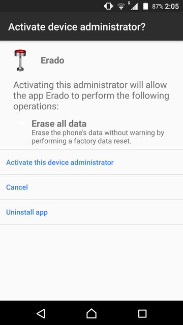Có một số ứng dụng khác cũng có thể bỏ qua yêu cầu kết nối internet. Nhưng sau đó họ dựa vào một tin nhắn SMS. Eradoo làm tất cả những điều đó nhưng không chỉ có thế. Xóa toàn bộ dữ liệu cũng có thể được kích hoạt khi thẻ SIM bị chặn hoặc xóa. Nếu bạn mua phiên bản pro, bạn thậm chí có thể nhận được số điện thoại di động của người đó nếu lắp SIM mới vào điện thoại của bạn