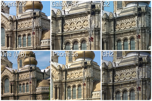 Trong khi đó, Galaxy S5 với hình ảnh 16 Mpx cho độ chi tiết cao hơn, sắc nét hơn nhưng sự có mặt của các thuật toán giảm nhiễu phần nào làm cho hình ảnh mất đi vẻ tự nhiên. LG G2 khắc phục được nhược điểm này từ Samsung khi cho độ “thực” của hình ảnh cao hơn.