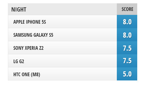 Về khoản này, iPhone 5s là cái tên nổi bật nhất: hình ảnh đẹp, màu sắc chính xác, độ sắc nét và chi tiết cao,…. Galaxy S5 cũng có chất lượng hình ảnh tương tự. Nhìn chung, bộ đôi này cho khả năng chụp đêm như nhau.