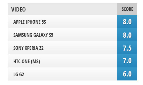 iPhone và Galaxy S5 tiếp tục là 2 cái tên dẫn đầu về khả năng quay phim với chất lượng, độ sắc nét cao, chống rung tốt kể cả vào ban đêm. Tuy nhiên, hạn chế của nó là âm thanh thu được khi quay phim phát ra chỉ ở mức trung bình nhưng vẫn có thể tạm chấp nhận được.