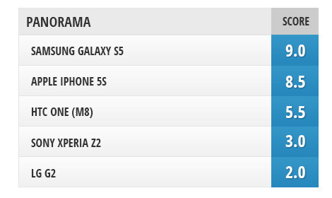 iPhone 5s cũng cho hình ảnh panorama khá tốt, chỉ thua mỗi Galaxy S5 và tổng độ phân giải hình ảnh cũng chỉ dừng lại ở hơn 20 Mpx. One M8 cũng cho thấy sức mạnh với hình ảnh đẹp, màu sắc trung thực (tổng độ phân giải là 13 Mpx). LG G2 “tệ” nhất khi hình ảnh panorama không có chất lượng nhưng kì vọng.