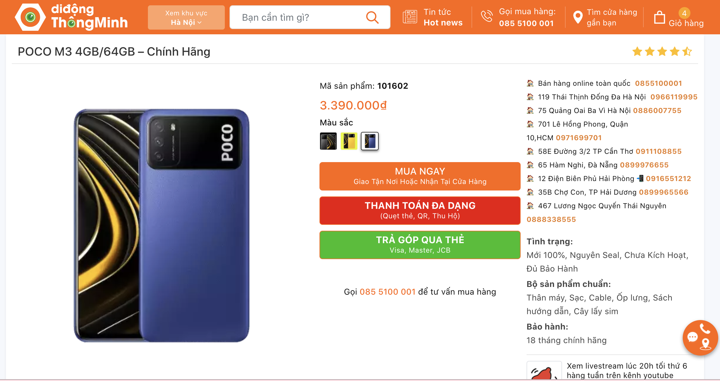 POCO M3 4GB/64GB – Chính Hãng giá 3.390.000đ bảo hành 18 tháng