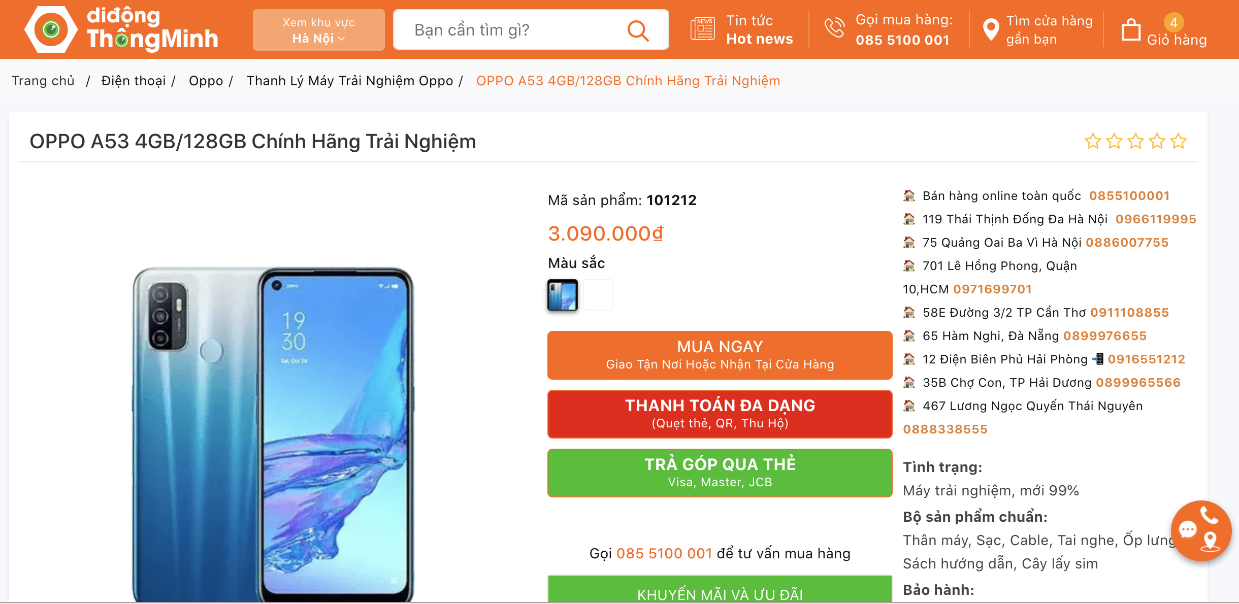 OPPO A53 4GB/128GB Chính Hãng Trải Nghiệm giá 3.090.000đ